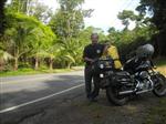 Puse el despertador a las 5:30am. y me levanté a las 7am., armé la moto, pasé a desayunar y terminé saliendo 8:30am. Desandé el camino del día anterior pero fué más fácil para Heidi porque era casi todo en bajada. Rodé toda la mañana haciendo algunos descansos y paré a comer algó cerca del mediodía. A eso de las 15 hs estaba en Playa Coco. Dejé la moto al lado de la playa y caminé un poco por la arena, al lado mío veo un local con el logo de Harley!, me acerqué y pregunté quienes eran los miembros del Hermosa Bad Boys y resultó ser Robert, el dueño del lugar, que estaba con Kenneth, un amigo, que tenía cabinas en Playa Hermosa, a 5km, para alojarme. Mientras esperaba hasta que se desocupen para compañarme yo miraba un lechón que hace 12 horas estaban cocinando sólo con humo, y Kenny se tomó al menos seis cervezas. Empezó a aparecer otra gente y se largó a llover, así que metimos mi moto dentro del local y apareció Scot, que no sólo me prestó la llave que necesitaba para modificar el encendido de mi moto sino que también me la regaló. Yo sabía que debía adelantar o atrasar el encendido, pero no tenía idea cual de las dos debía hacer, y si lo hubiera sabido tampoco tenía idea de para que lado mover el registro para conseguir el resultado deseado; pero recordé las palabras de Dios (Rubén de x-trememotorcycles), "si no sabés donde ponerlo, ponelo al medio, como con las mujeres". Encontré que el encendido estaba en el extremo derecho, así que lo moví un tercio hacia el medio, cerré todo, probé si encendía la moto, y debía salir a la ruta para probarlo. Al rato nos fuimos para Playa Hermosa donde me alojé, en el camino comprobé que la moto andaba mucho mejor, ya estaba anocheciendo. Alcanzé a ir a super para comprar comida y cigarrillos y en cuanto llegué a mi cabina de desató una tormenta tropical que retumbaba en el techo de chapa, muchos truenos y relámpagos que alcanzaba a ver como caían en el mar desde mi ventana, ideal para dormir.